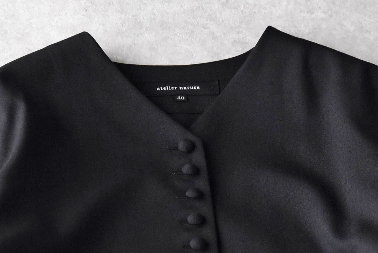 毎シーズン沢山のお客様にご好評頂いているatelier naruseのフォーマルシリーズのクルミボタンワンピースです。小さなクルミボタンが整然と並んだ姿がクラシカルで美しく、まさにアトリエナルセのフォーマルウェアを象徴するアイコン的存在の一枚となっています。