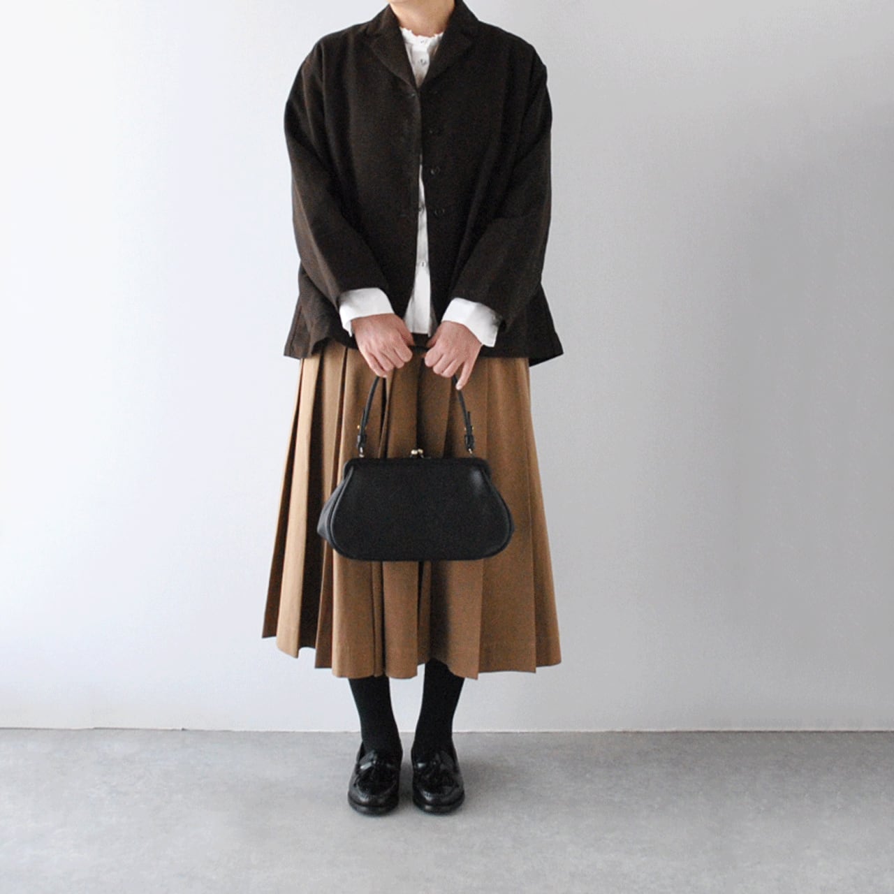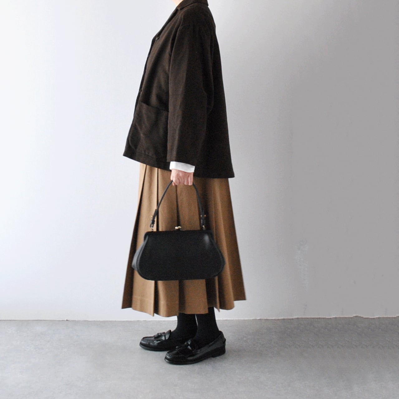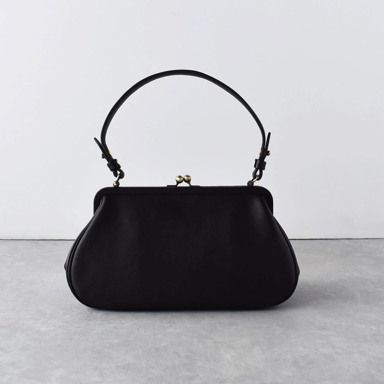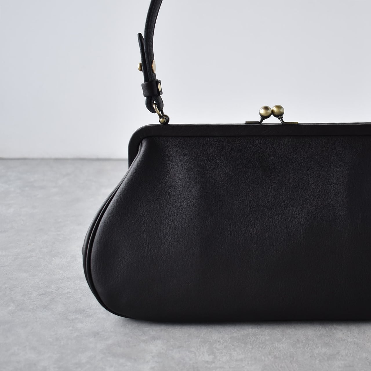 年齢やスタイルを問わず永く使っていただけるようにとの願いを込めて、ビルの一室にある小さなアトリエでお一人で製作されているYammart(ヤマート)さんのレザーアイテム。曲線の多いデザインで女性らしい印象の、がまぐち仕様のハンドバッグ。フォーマルなシーンからカジュアルな普段使いまで幅広いシーンでお使い頂けます。ハンドルは手提げでもショルダーでもお持ち頂ける長さです。使い込むほど色の深みと自然なツヤが増し、味わい深くなっていく変化の過程も楽しめます。長財布や、薄めのものならA5サイズまで入る大きさです。内側には、片側にオープンポケット、もう片側にはジップポケットがついています。