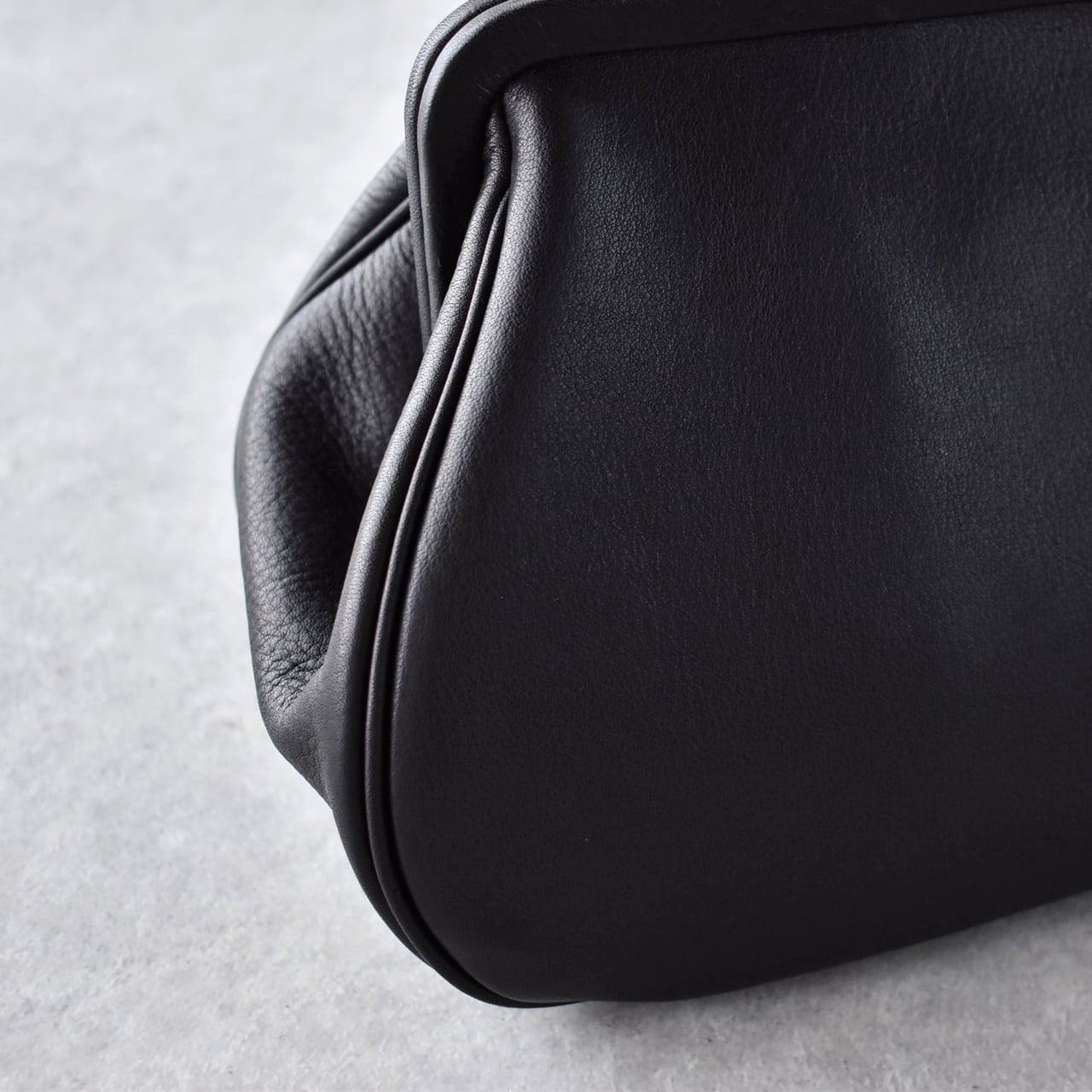 Yammart plain gama hand bag-round (ブラック)