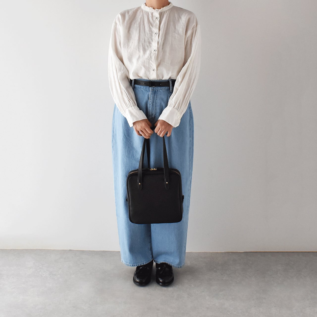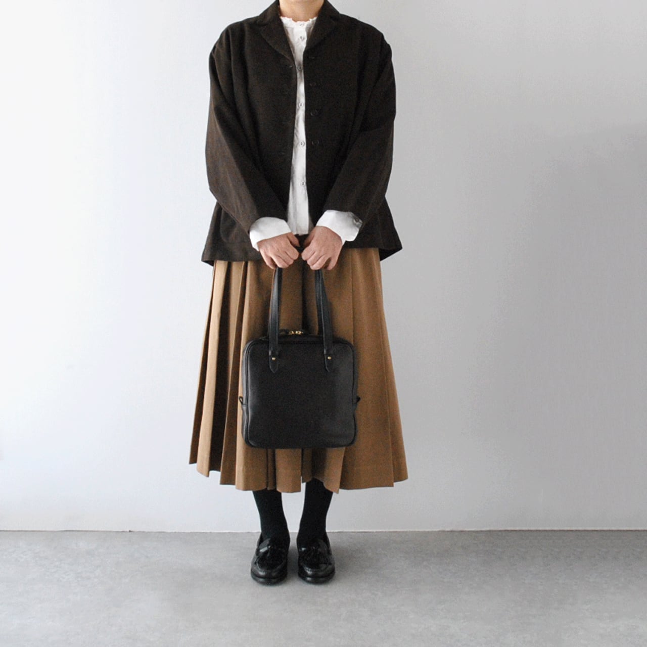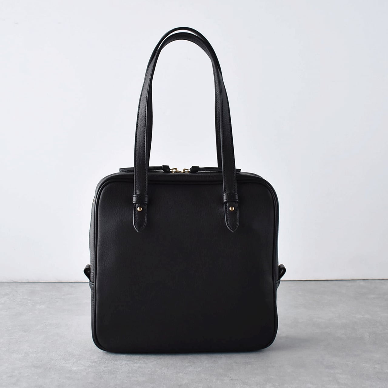 年齢やスタイルを問わず永く使っていただけるようにとの願いを込めて、ビルの一室にある小さなアトリエでお一人で製作されているYammart(ヤマート)さんのレザーアイテム。こちらは四角い形のハンドバッグ。革の風合いを楽しめるようにシンプルに仕上げられています。ハンドルは手提げでもショルダーでもお持ち頂ける長さです。使い込むほど色の深みと自然なツヤが増し、味わい深くなっていく変化の過程も楽しめます。A5サイズや500mlのペットボトルも収納できる大きさです。内側には、片側にはオープンポケット、もう片側にはジップポケットが付いています。