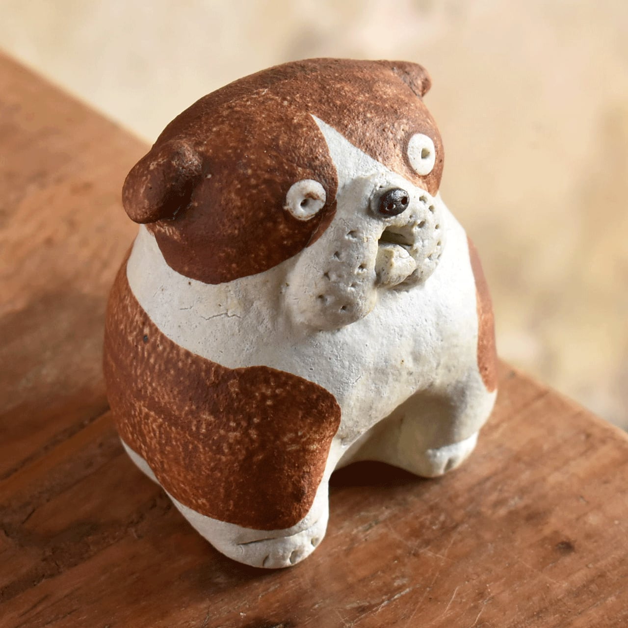 滋賀県の自然豊かな信楽の窯元にて作られる前川幸市さんの小さな動物たち。先代が切り開いた森の中、家族や従業員たちとひとつひとつ手作業にて生み出されています。