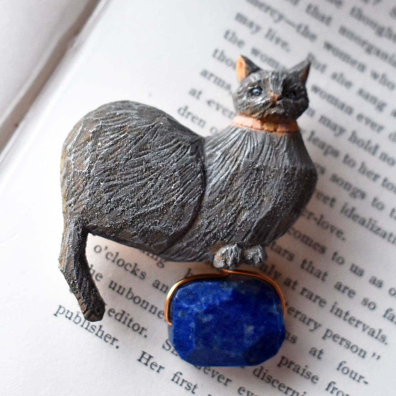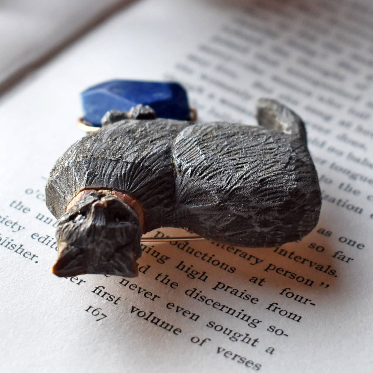 kitona 夜の集会ネコブローチ (ラピスラズリ)