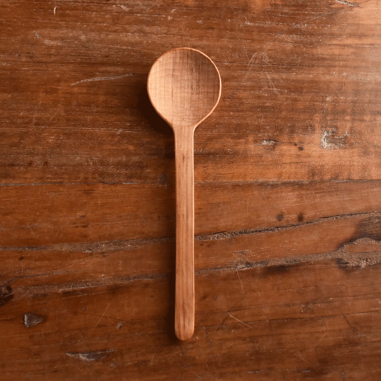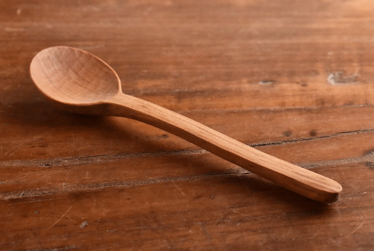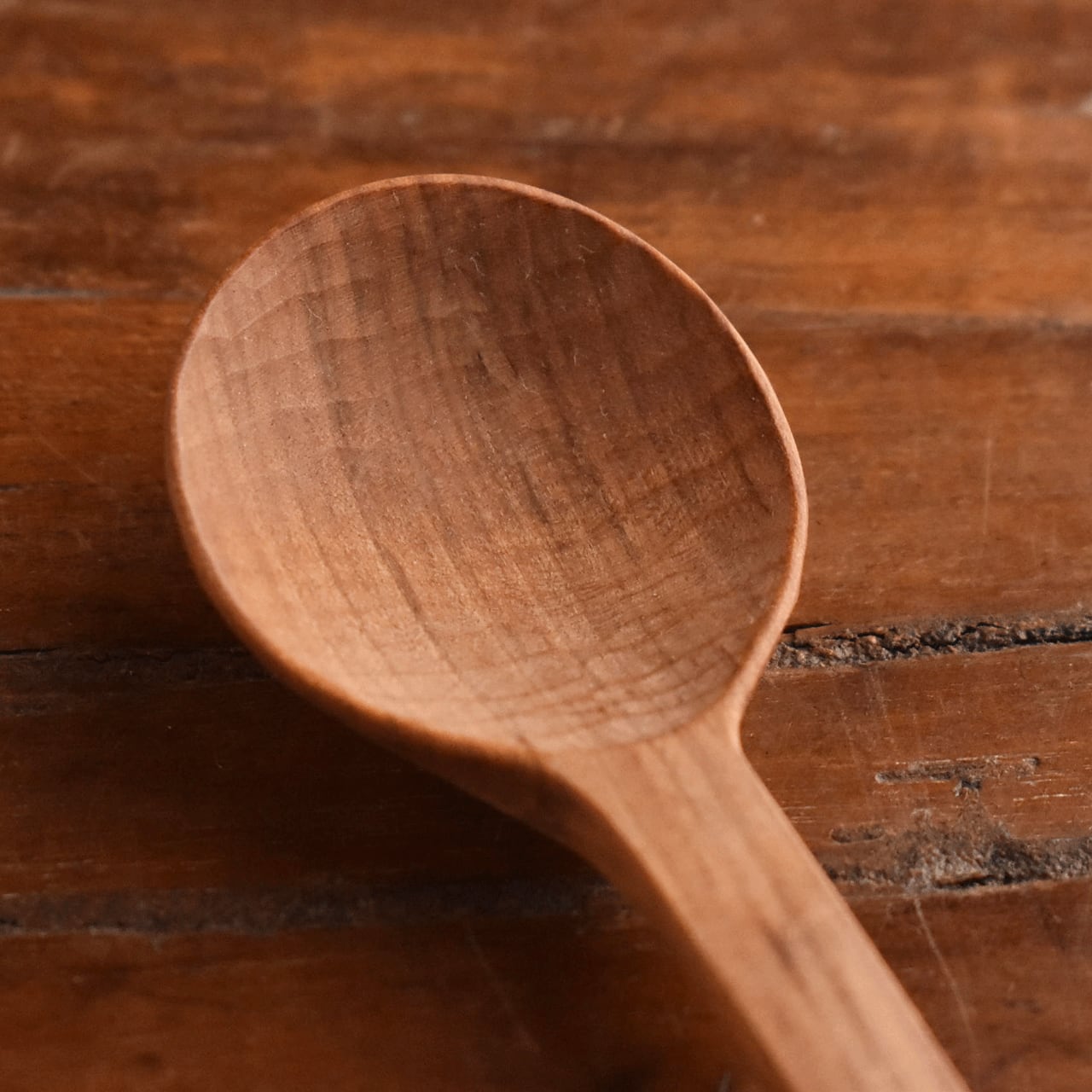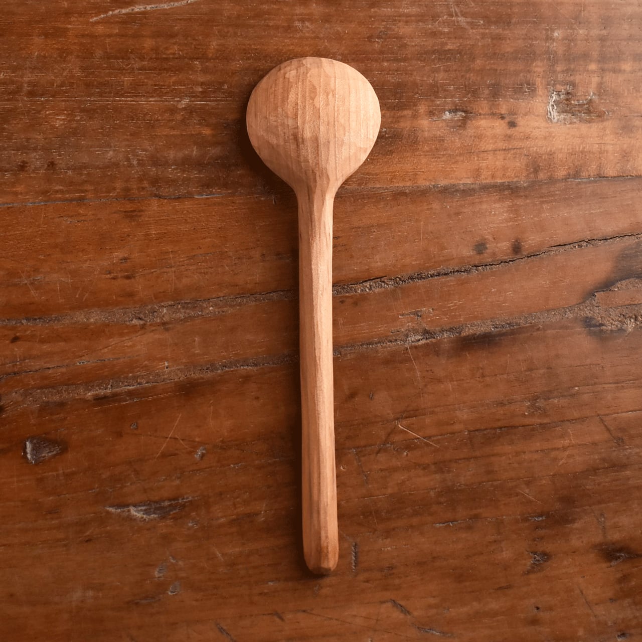 木工作家「icura」さんの桜のスープスプーンです。白い花を咲かせる山桜の木で作られています。彫りの入ったゴツゴツした表情がとても素敵です。オイルで仕上げた深い色合いは、使い込むことで更に深い褐色へと深みを増してくれますよ。