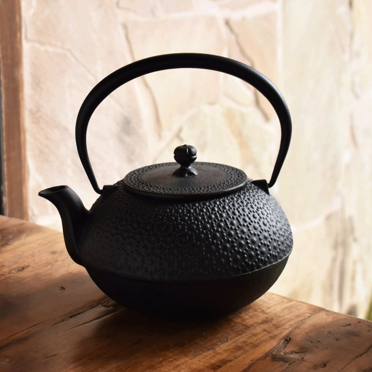 1.25Lサイズの鉄瓶です。南部鉄の鉄瓶でお湯を沸かすと体に良いとされる二価鉄が溶け出して、鉄分の補給にも役立ちます。また、水道水の塩素除去にも大きな効果があることが科学的に実証されていますので、鉄瓶で沸かしたお湯でお茶を入れるとミネラルウォーターを使うよりもおいしく出来るそうです。