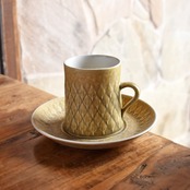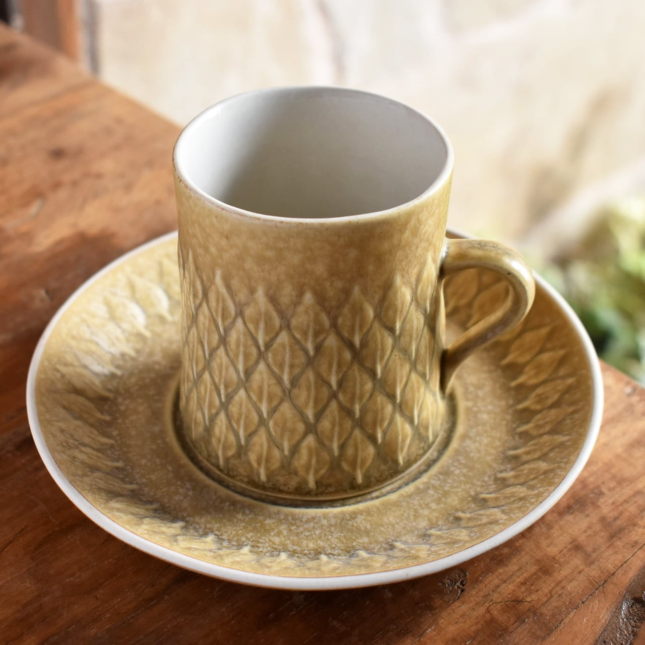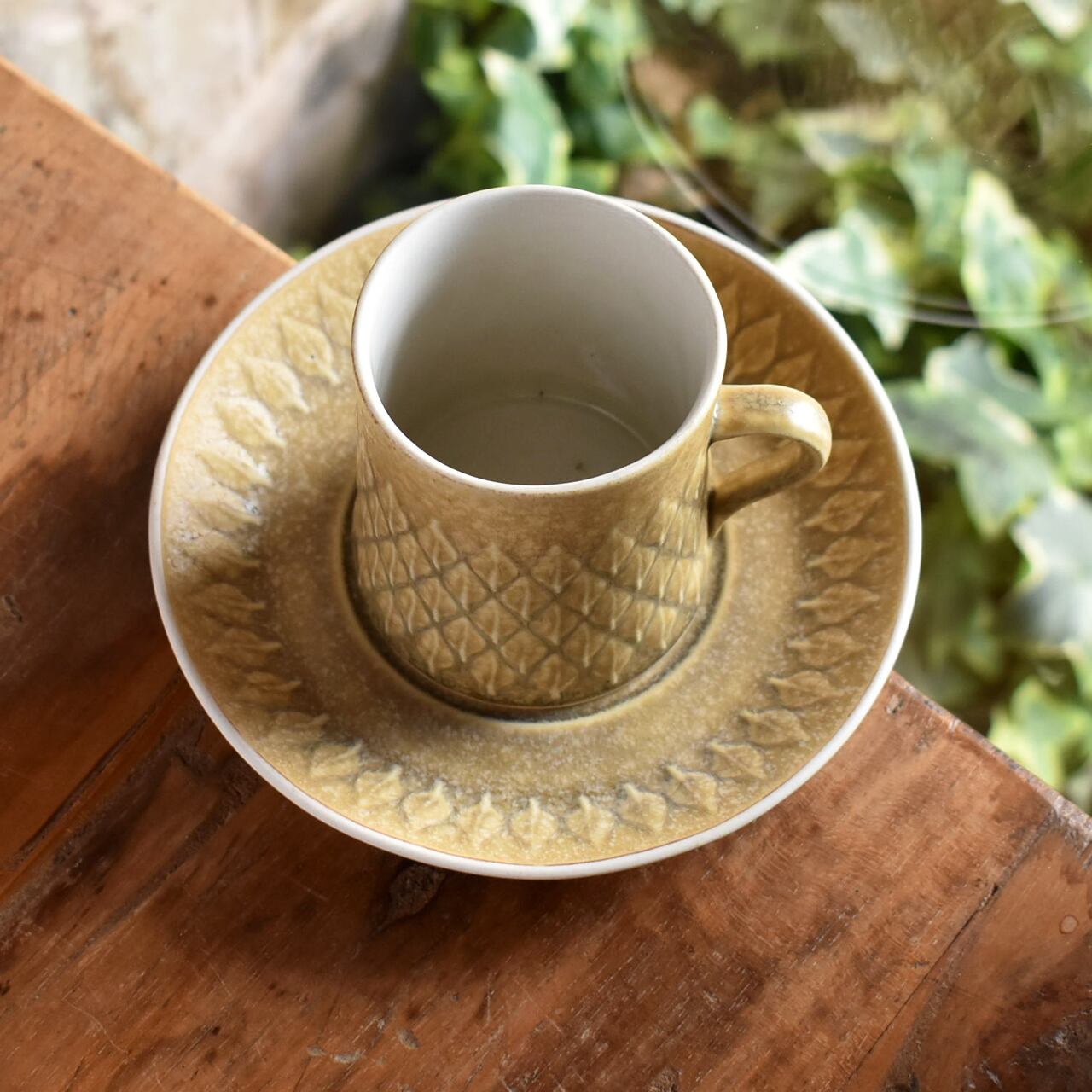 デンマークデザインの巨匠Jens H Quistgaard (クイストゴー) がデザインを手掛けた ReliefシリーズのコーヒーC/Sになります。1950年代~1980年代にかけてkronjyden (クロニーデン)、Nissen (ニッセン)、B&Gと窯を変えながら製造が続けられたロングセラーアイテムです。カップの内側にうっすらとしたカトラリー痕、製造時に出来た黒点がある以外は目立った使用感のない、とても綺麗なコンディション。