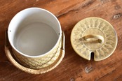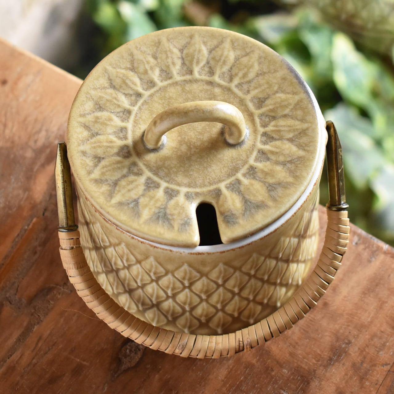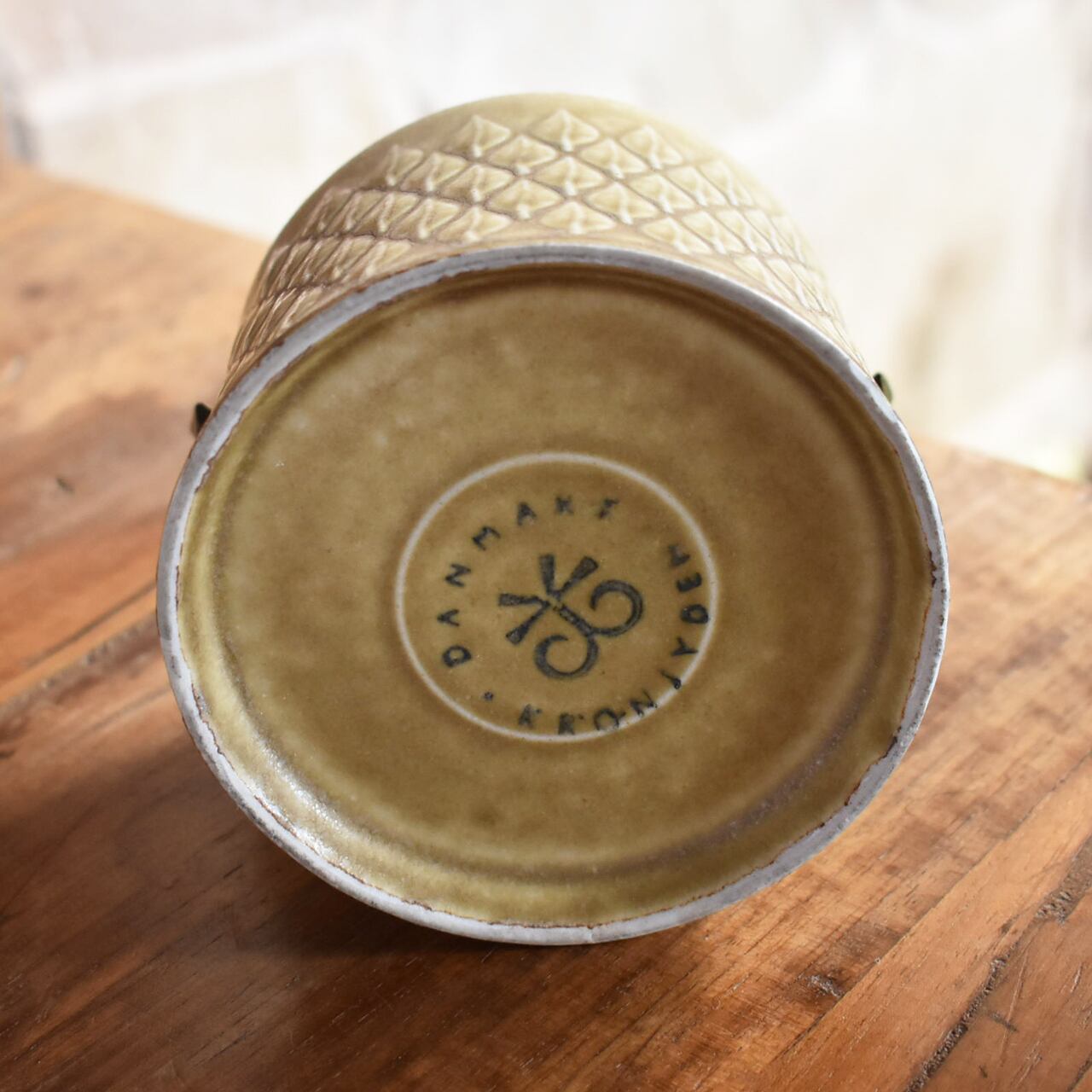 デンマークデザインの巨匠Jens H Quistgaard (クイストゴー) がデザインを手掛けた Reliefシリーズのマーマレードジャーになります。1950年代~1980年代にかけてkronjyden (クロニーデン)、Nissen (ニッセン)、B&Gと窯を変えながら製造が続けられたロングセラーアイテムです。使用感がなく持ち手のツルもとても状態が良く、とても綺麗なコンディションです。