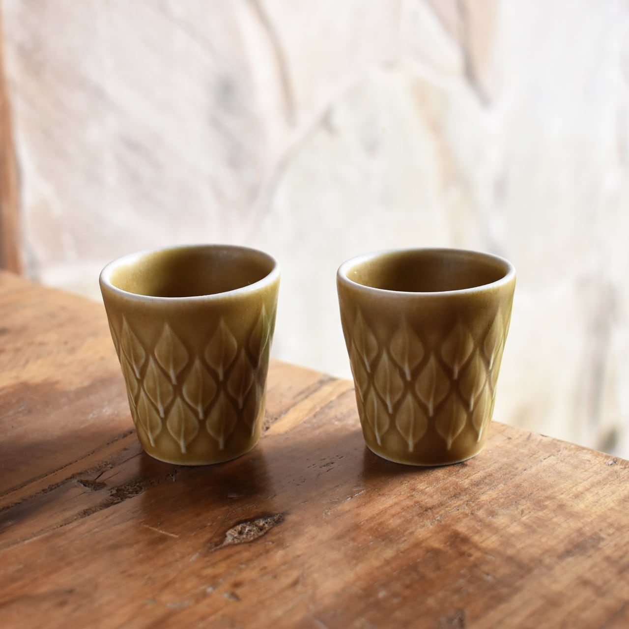 デンマークデザインの巨匠Jens H Quistgaard (クイストゴー) がデザインを手掛けた Reliefシリーズの玉子立てになります。1950年代~1980年代にかけてkronjyden (クロニーデン)、Nissen (ニッセン)、B&Gと窯を変えながら製造が続けられたロングセラーアイテムです。未使用に近い、美しいコンディションです。在庫に個体差はなく、すべて画像の様な柄の出方と色味になります。