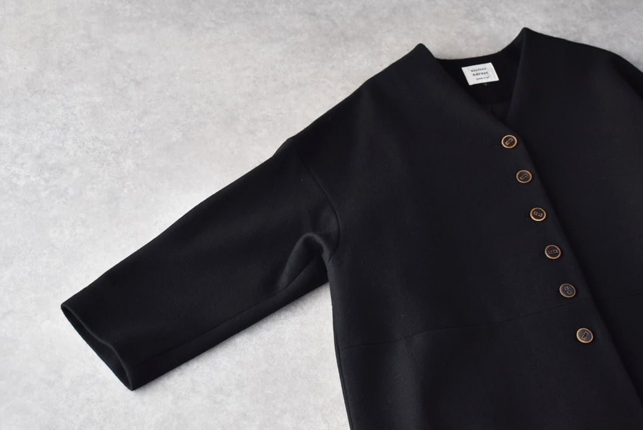 atelier naruseから、冬の定番メルトンウールコートが今年も届きました。super100'sウールが原料の、毛羽立ちの少ないしっとり滑らかなメルトンウールを使用した上質な一着。しっかりとした厚みと防寒性がありながら、着用時にはそれほど重さは感じず、立体的でゆったりとしたサイズ感も絶妙で、ストレスを感じることなく楽しんで頂けますよ。雰囲気のある水牛ボタンもポイント。1サイズはセミロング丈でコクーンシルエットが強調された可愛くアクティブな印象。2サイズはロング丈でしっとりとした大人な印象で着て頂けると思いますので、お好みでお選びくださいね。冬のコート選びに迷ったらぜひ!