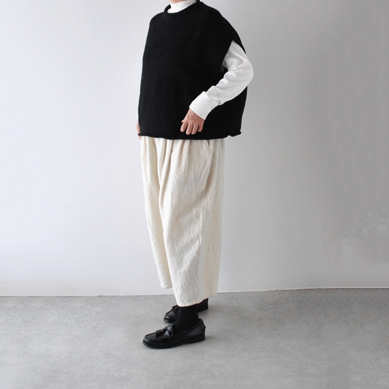 Atelier d'antanから、冬を象徴するニットシリーズの人気のベスト「リュード」が今年も届きました。ラムズウールで編み上げられた優しい雰囲気とふっくらとした程よいボリューム感が本当に愛らしい一枚です。ゆったりとした身幅、軽い着心地で、ブラウスやタートルネックなどのトップスやワンピースなど幅広いアイテムに重ねて、ストレスなく楽しんで頂けますよ。