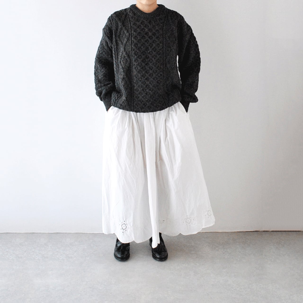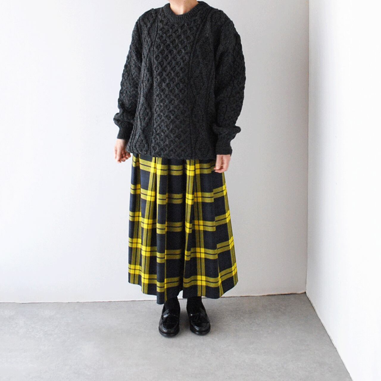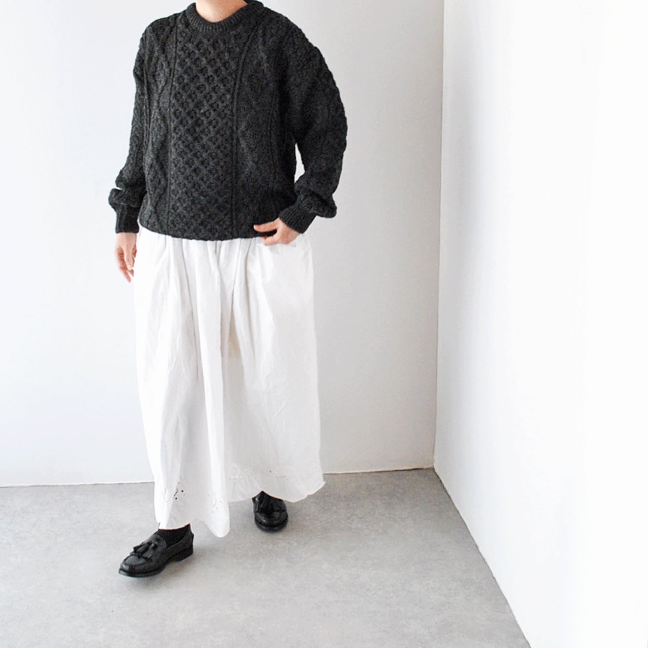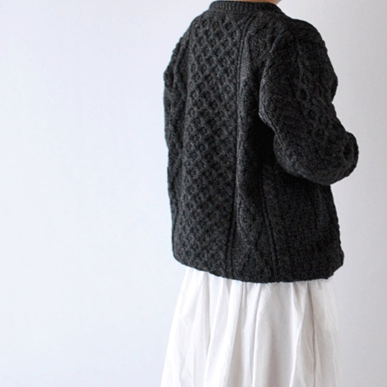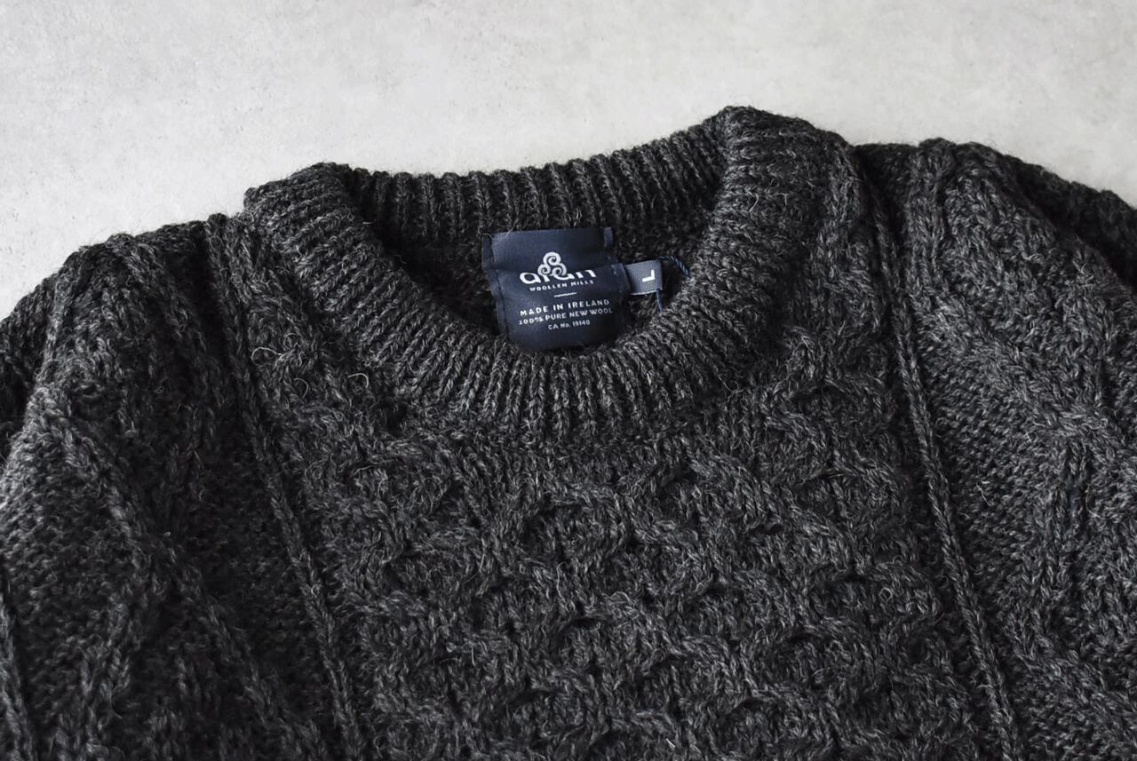 1968年から続くアイルランドのニットメーカーAran Woollen Mills(アランウーレンミルズ)のアラン編みのニットセーターです。少しオーバーサイズぎみにゆったりと着て頂けるようにLサイズをセレクトしました。ボリューム感のあるロングスカートやワイドパンツなどと合わせて絶妙なバランスでコーディネートして頂けますよ。しっかりとした質感、美しい編み目を見るたびその上質さを感じさせられる一枚。アラン諸島のケルト民族に伝わる伝統ある編み目、しっかりと編まれたことによりもたらされる温かさ、丈夫で汚れにくく型崩れしにくい着心地、流行に流されない落ち着いた雰囲気がとても素敵で、長年大事にしたくなるアイテムです。