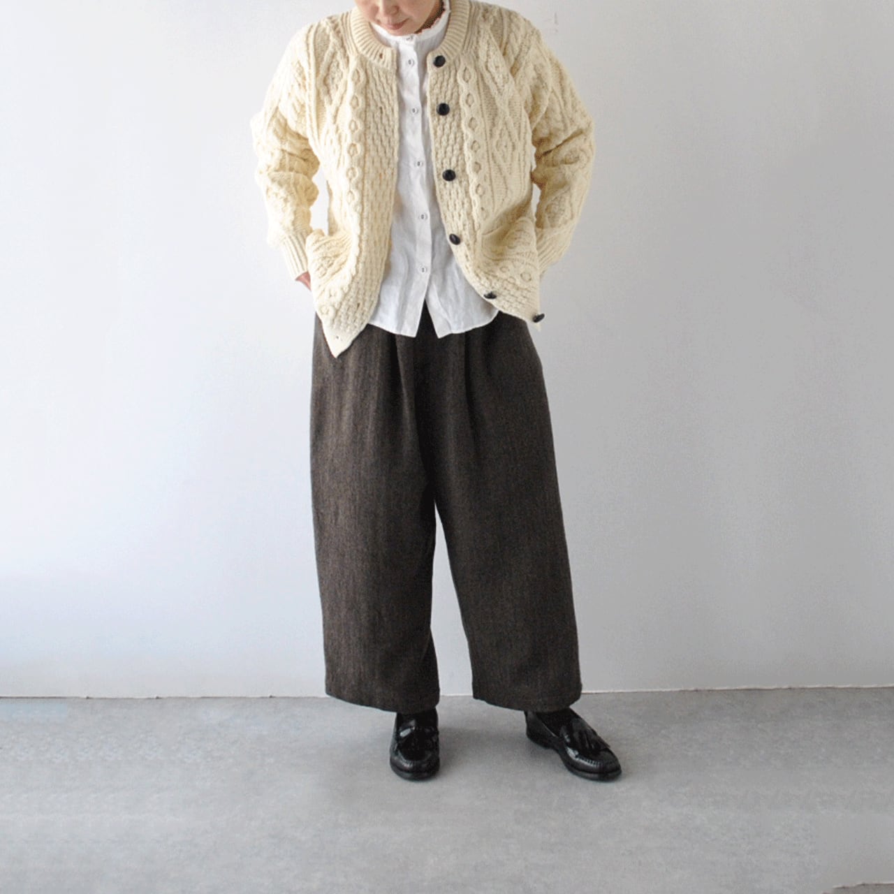 Aran Woollen Mills アランニットカーディガン (エクリュ)