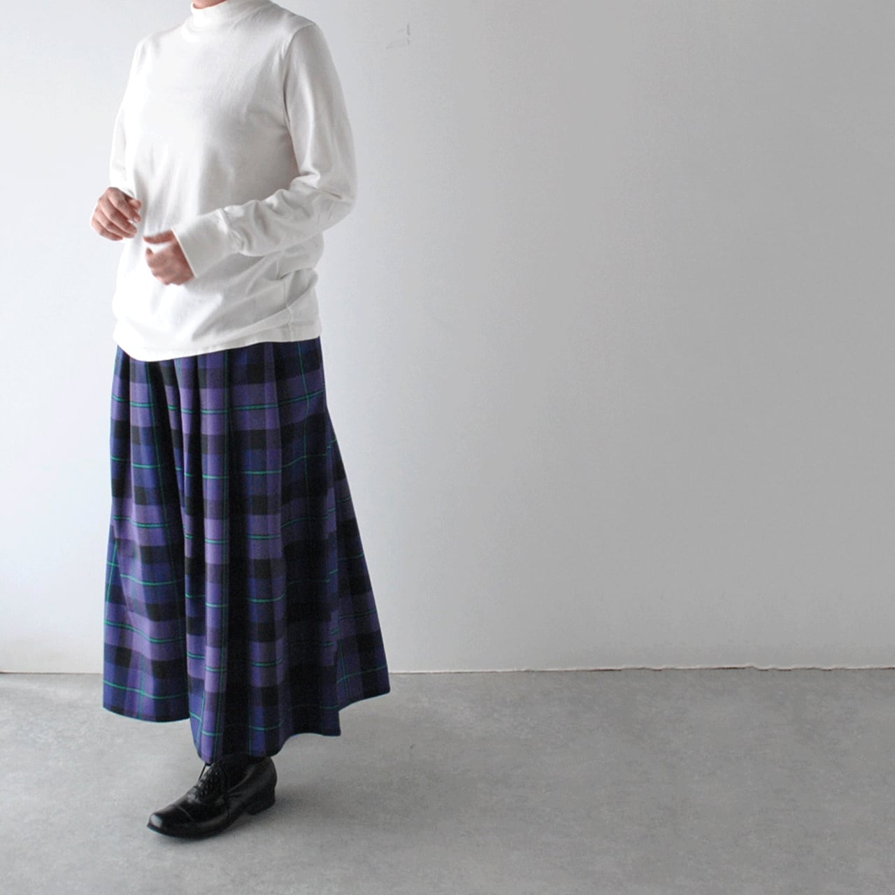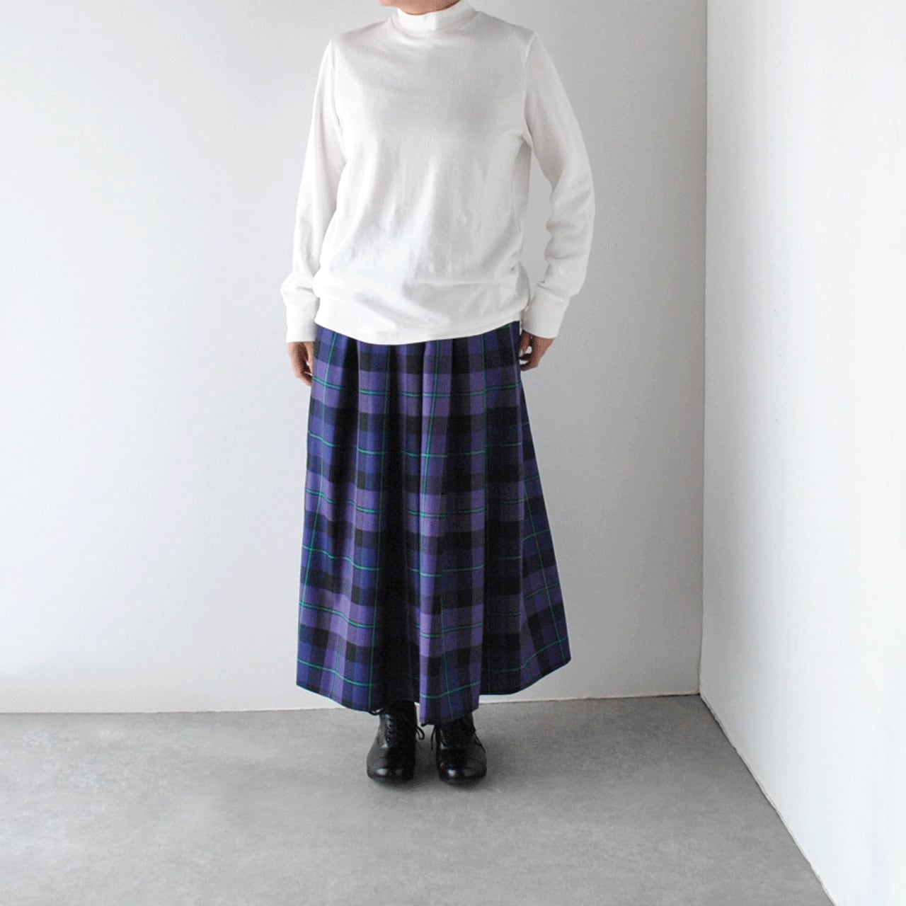 150年にわたり、首都ダブリンに於いてアイルランドの民族衣装であるキルト製品を作り続けている名門O'NEIL OF DUBLIN社。 受け継がれてきた伝統製法で織り上げられる製品はいつまでも変わらぬ魅力を放ち続けます。履きやすさを追求したウエストゴム仕様のハーフプリーツスカート。程よいボリューム感と長めの丈感がバランスよく「オニールは履きたいけど巻きスカートは苦手」という方に、とにかくストレスフリーで楽しんでいただける一枚です。数ある中から厳選されたタータンチェックは、暗くなりがちな秋冬の装いに温かな彩りを与えてくれますよ。一枚あると秋冬のコーディネートがグッと可愛くなる本当にオススメのアイテムです。