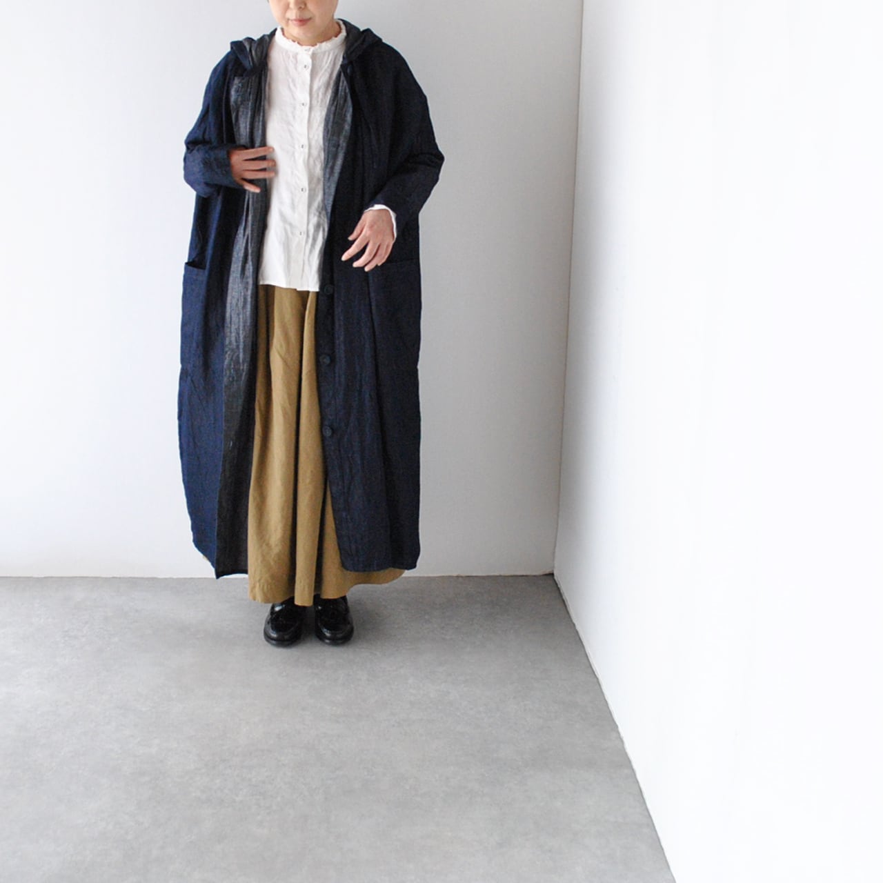 Gauze# から、しなやかで軽い着心地のライトオンスデニムで仕立てたフード付きのコートワンピースが届きました。たっぷりと生地を使用しビッグシルエットに仕上げた、ゆったりとした着心地で楽しんで頂ける一枚です。首元にたっぷりと寄せたギャザーが生み出す優雅なシルエットと、くたっとしたデニムの表情が合わさって何とも言えない良い雰囲気。ボタンを開けてコートの様に羽織っても、ボタンを留めてワンピースとしても、とっても絵になりますよ。