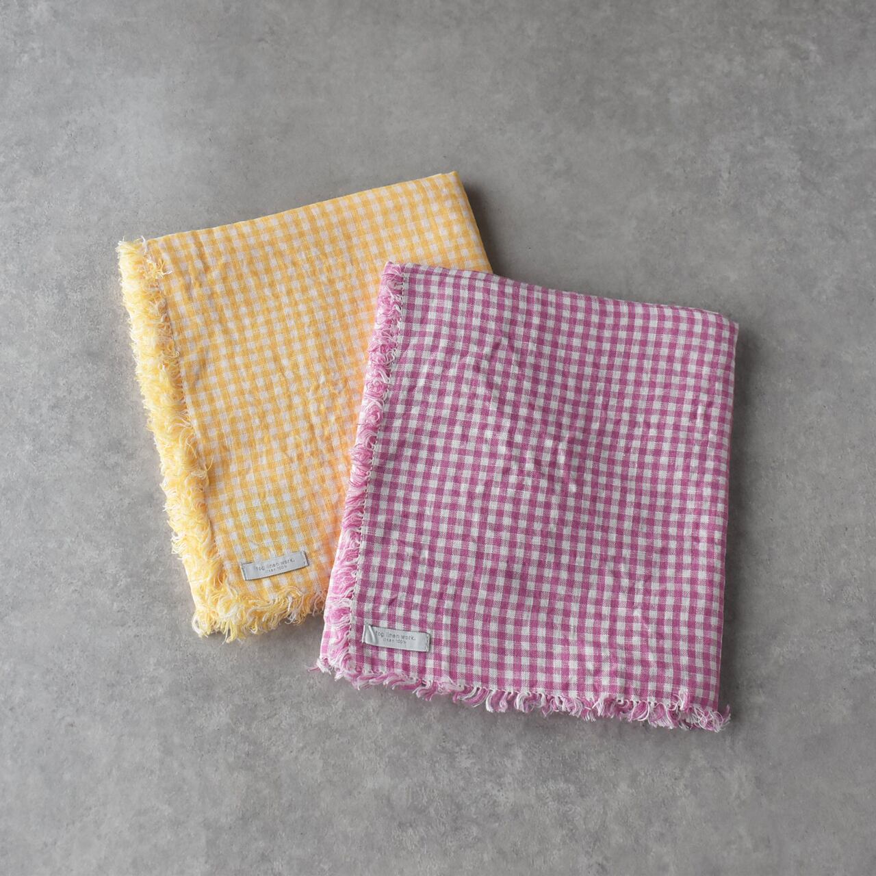リトアニアリネン100%のざっくりとした素材感が心地よいfog linen workのリネンストール。使い勝手の良いサイズ感でとってもバランスの良いボリューム感で楽しんで頂ける一枚です。3辺がフリンジ、1辺は生地のミミを活かした仕上げになっていて、巻き方によって色んな表情を見せてくれますよ。春らしい色使いのチェック柄も可愛くてひざ掛けやマルチクロスとしても使えるので一枚あると本当に便利です。