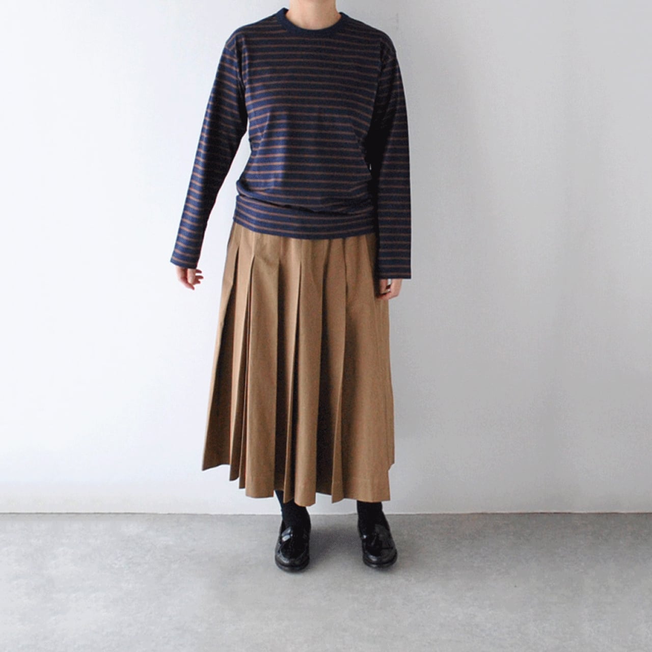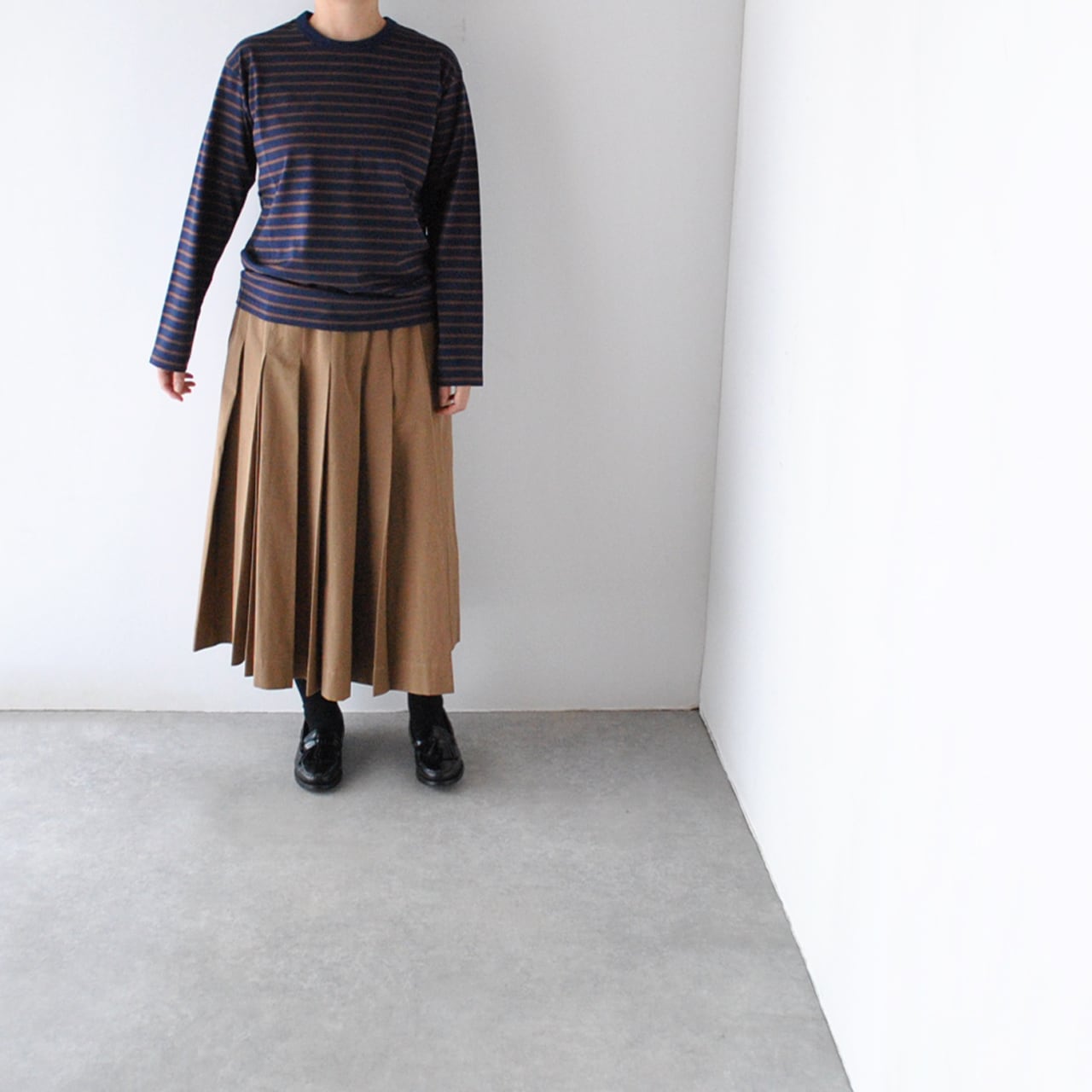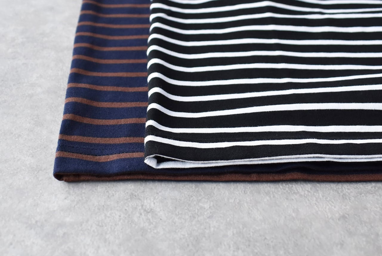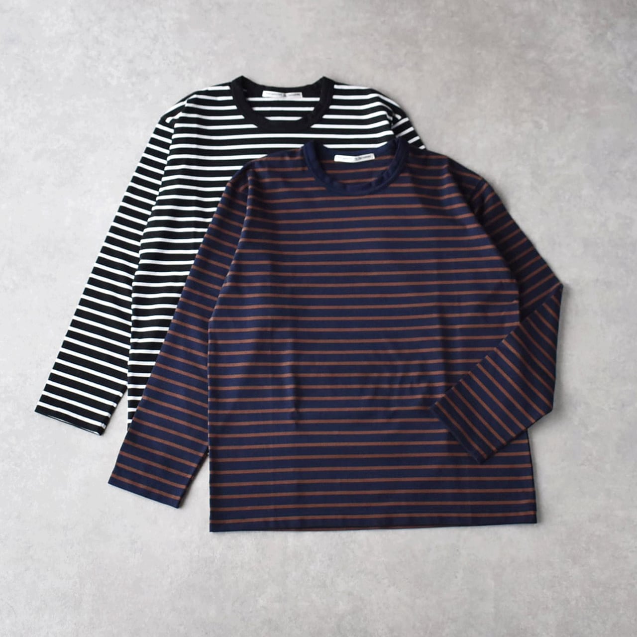 Charpentier de Vaisseauからとても洗練された印象のボーダーカットソーが届きました。上質なエジプト綿をブレンドした滑らかな肌触りで、とても心地よく着て頂けますよ。程よくゆったりとしていながら、着て頂くとスッキリとした美しいシルエット。繰り返し着てもへたりが少なく、吸湿性・放湿性に優れているのも嬉しいですね。渋めの秋カラーも大人っぽくて本当に素敵ですよ。