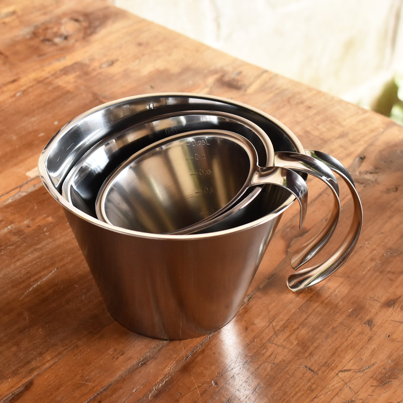 良質な鉄鉱石が採れるスウェーデンで、ステンレス製のキッチンツールを長年に渡って製造してきたJonas(ヨナス)の計量カップです。北欧の洗練されたデザインと質実剛健な機能性を持つヨナスの製品は、世界中で高い評価を受けています。こちらの計量カップは、カップとリットルの2つの目盛り単位が刻印されており、オープンハンドルなので他のサイズとスタッキングして収納する事が出来るようになっています。