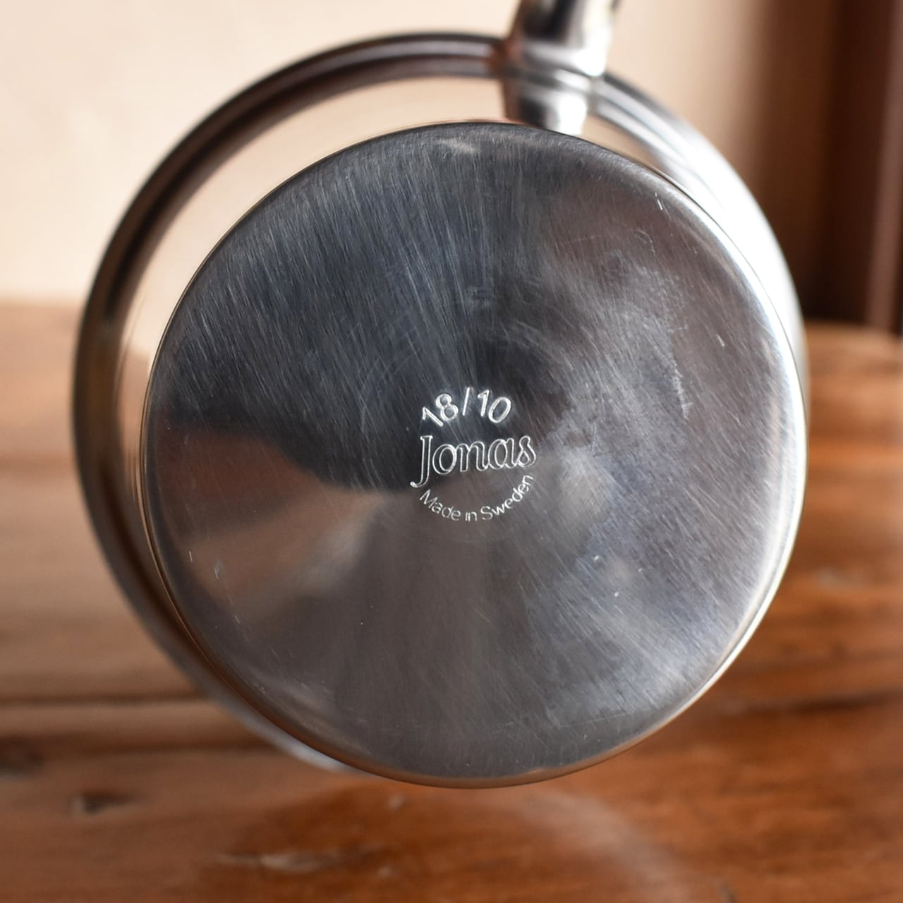 良質な鉄鉱石が採れるスウェーデンで、ステンレス製のキッチンツールを長年に渡って製造してきたJonas(ヨナス)の計量カップです。北欧の洗練されたデザインと質実剛健な機能性を持つヨナスの製品は、世界中で高い評価を受けています。こちらの計量カップは、カップとリットルの2つの目盛り単位が刻印されており、オープンハンドルなので他のサイズとスタッキングして収納する事が出来るようになっています。
