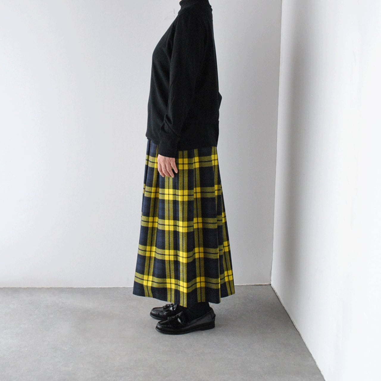 150年にわたり、首都ダブリンに於いてアイルランドの民族衣装であるキルト製品を作り続けている名門O'NEIL OF DUBLIN社。 受け継がれてきた伝統製法で織り上げられる製品はいつまでも変わらぬ魅力を放ち続けます。履きやすさを追求したウエストゴム仕様のハーフプリーツスカート。程よいボリューム感と長めの丈感がバランスよく「オニールは履きたいけど巻きスカートは苦手」という方に、とにかくストレスフリーで楽しんでいただける一枚です。数ある中から厳選されたタータンチェックは、暗くなりがちな秋冬の装いに温かな彩りを与えてくれますよ。一枚あると秋冬のコーディネートがグッと可愛くなる本当にオススメのアイテムです。