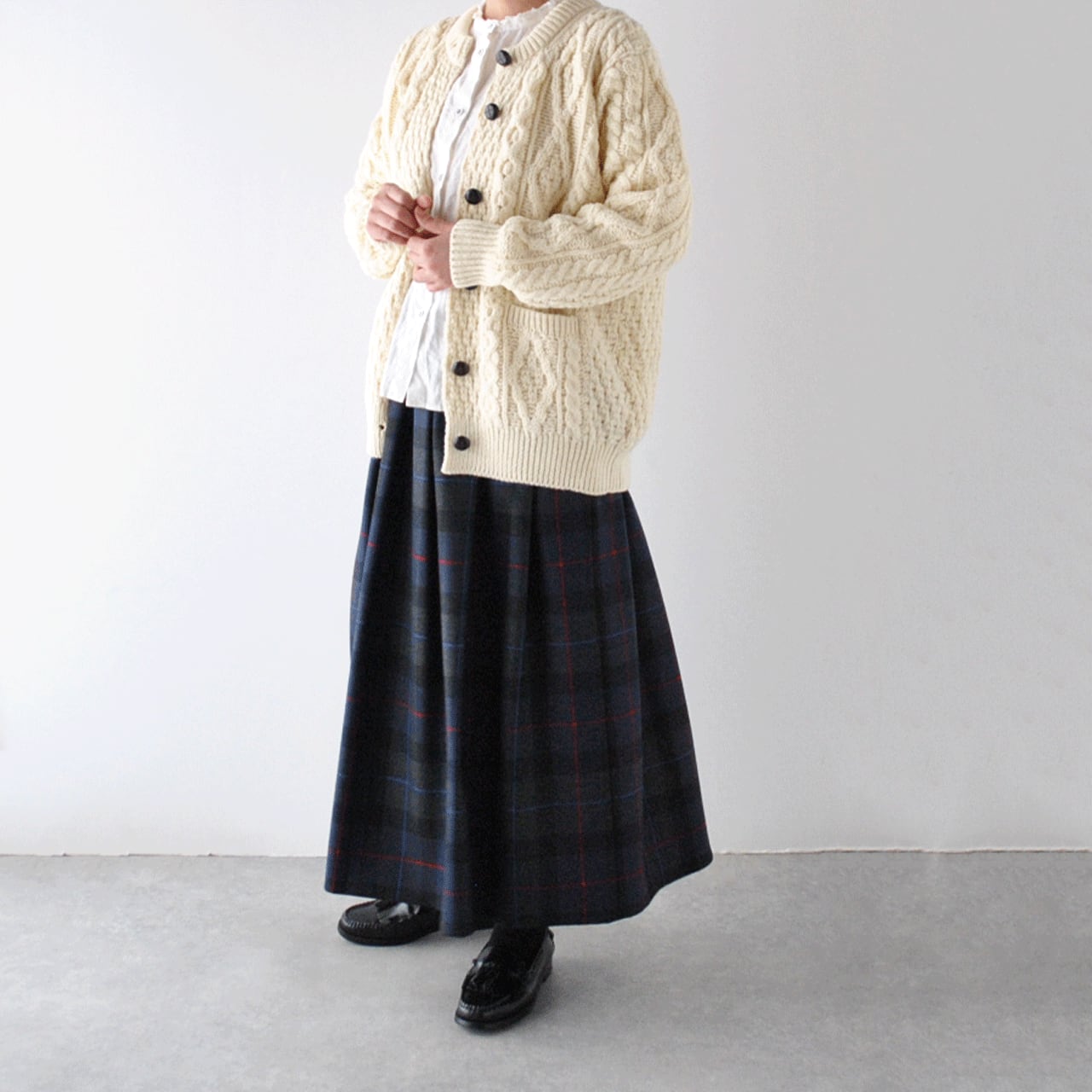 150年にわたり、首都ダブリンに於いてアイルランドの民族衣装であるキルト製品を作り続けている名門O'NEIL OF DUBLIN社。受け継がれてきた伝統製法で織り上げられる製品はいつまでも変わらぬ魅力を放ち続けます。履きやすさを追求したウエストゴム仕様のハーフプリーツスカート。程よいボリューム感と長めの丈感がバランスよく「オニールは履きたいけど巻きスカートは苦手」という方に、とにかくストレスフリーで楽しんでいただける一枚です。数ある中から厳選されたタータンチェックは、暗くなりがちな秋冬の装いに温かな彩りを与えてくれますよ。一枚あると秋冬のコーディネートがグッと可愛くなる本当にオススメのアイテムです。