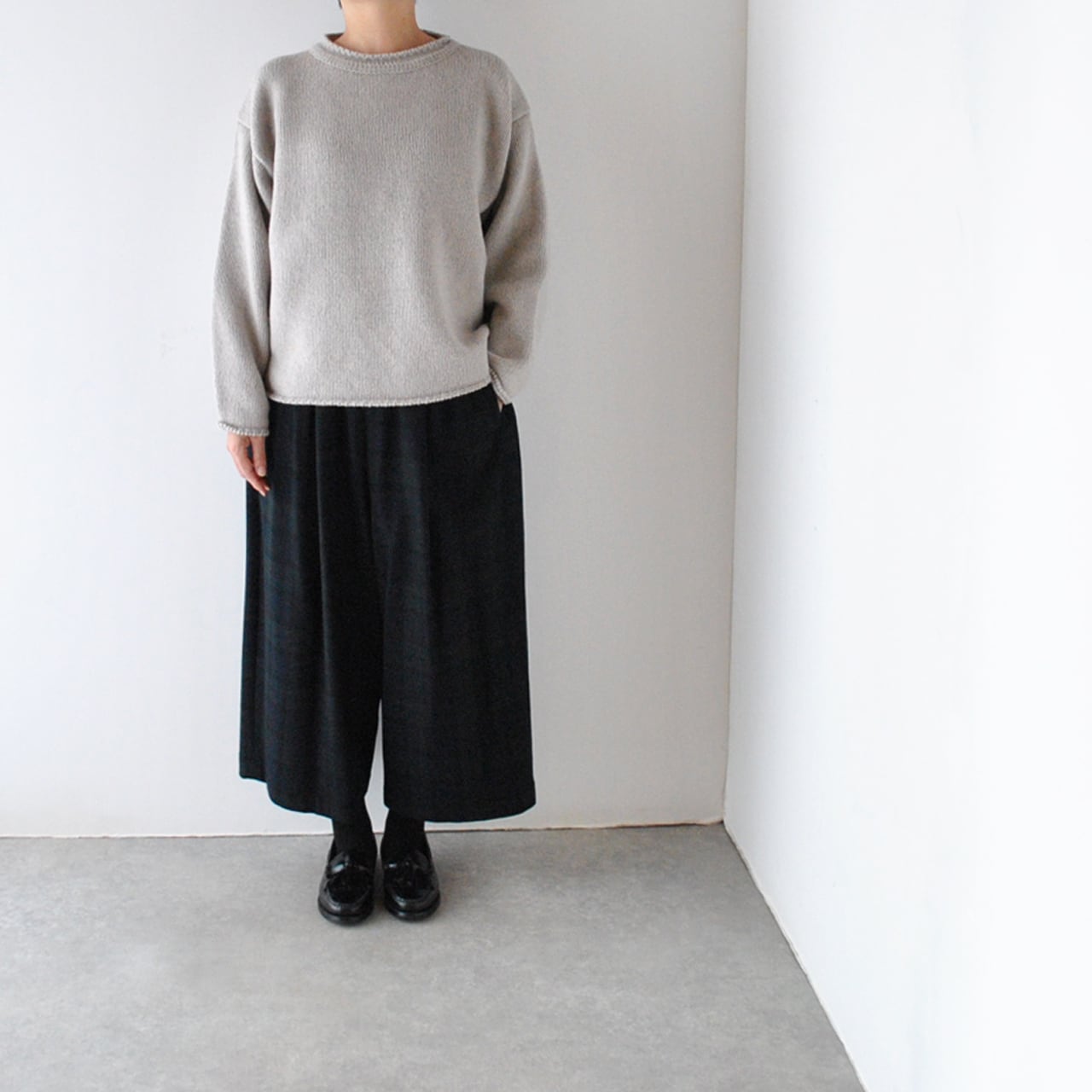 atelier naruseのコレクションの中でも、とても優秀で使い勝手の良いガウチョパンツ。昨年もご好評頂いたブラックウォッチ(タータンチェック)柄が今シーズンも届きましたよ。ふっくら軽い中肉厚のウールフラノ素材で温かく履いて頂けます。股上が深く、包み込まれるような安心感のある履き心地もクセになりますよ。大人の女性にカッコよく楽しんで頂きたい一枚です。