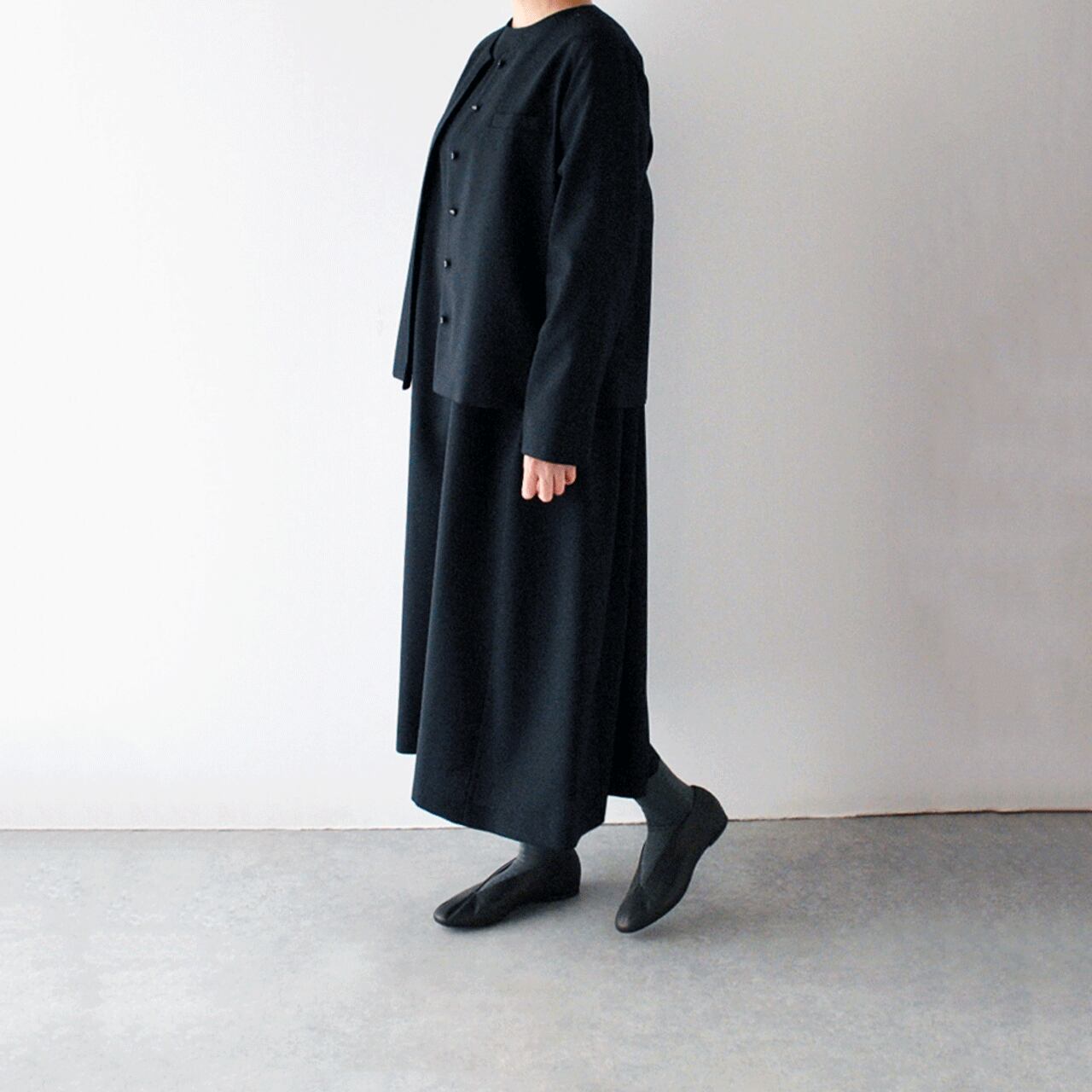 ※ノーカラージャケットとセットアップで着て頂く場合は、ジャケットは1サイズ大きいサイズ(ワンピース38サイズ+ジャケット40サイズ、ワンピース40サイズ+ジャケット42サイズ)を合わせて頂く事をオススメします。