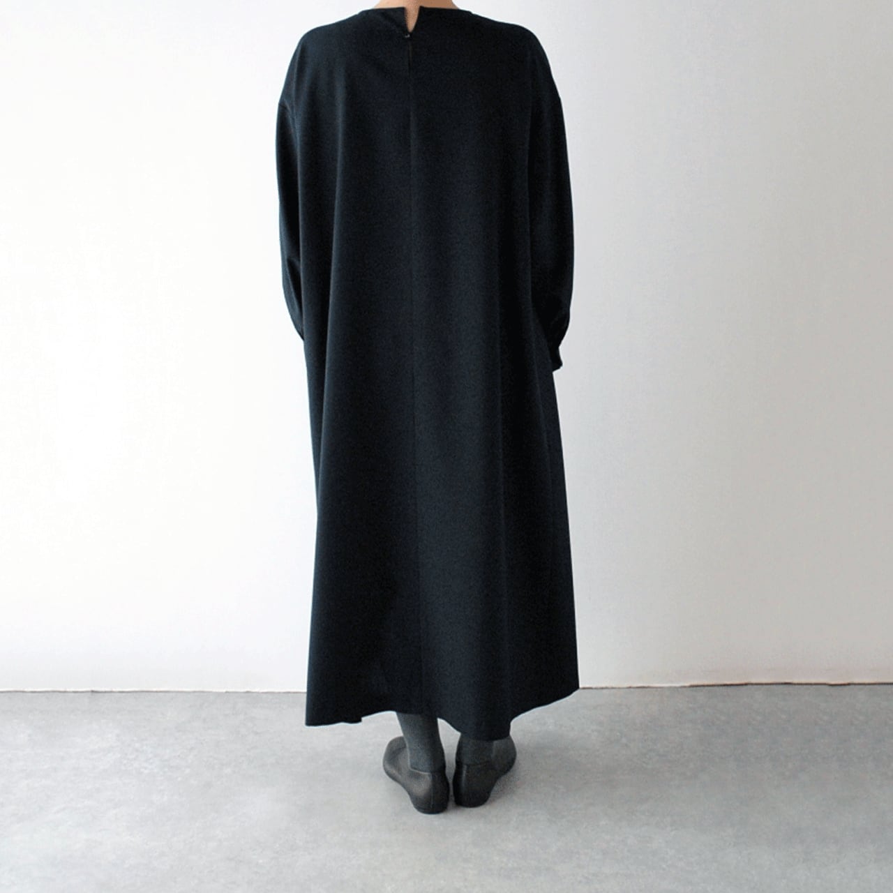 毎シーズン沢山のお客様にご好評頂いているatelier naruseのフォーマルウエアシリーズのワイドワンピースです。定番の「クルミボタンフォーマルワンピース」や「フォーマルAラインワンピース」に比べて、肩幅、身幅が広く、ドロップショルダーになったゆったりとしたサイズ感で「フォーマルだけどフォーマルすぎない」リラックス感のある着心地です。年齢を重ねた方や窮屈なフォーマルウェアは苦手という方にオススメしたい一枚。生地には季節を通して長く着用して頂ける、さらりとした肌触りの上質なトロピカルウール地を使用し、裏側の縫製仕様にまでこだわって作られていますよ。スカートの裏地は付いていないので、ペチスカートやぺチパンツをインナーに履いてご着用下さい。