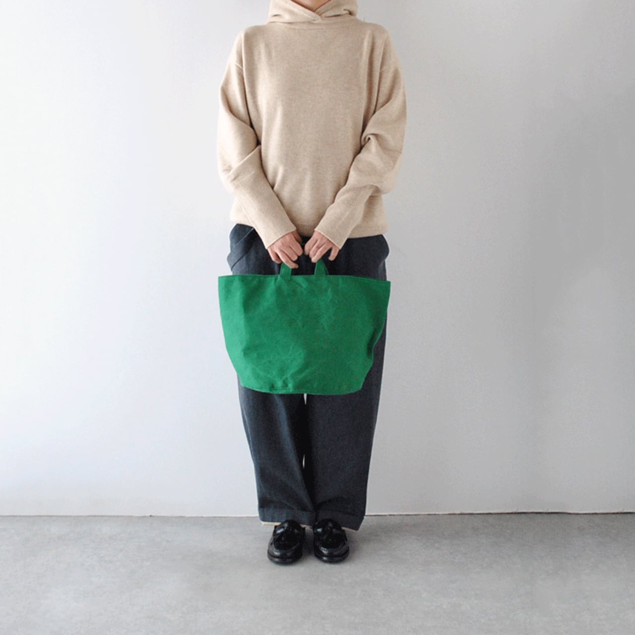 定番として人気の高い、丸底、筒型で持ち手のトートバッグです。持っている時や置いた時、その時々で表情のある愛着のもてるデザインで、他にはないカラーリングも魅力的。口はホックで閉じることが出来、内側には片側にジップポケットがございます。