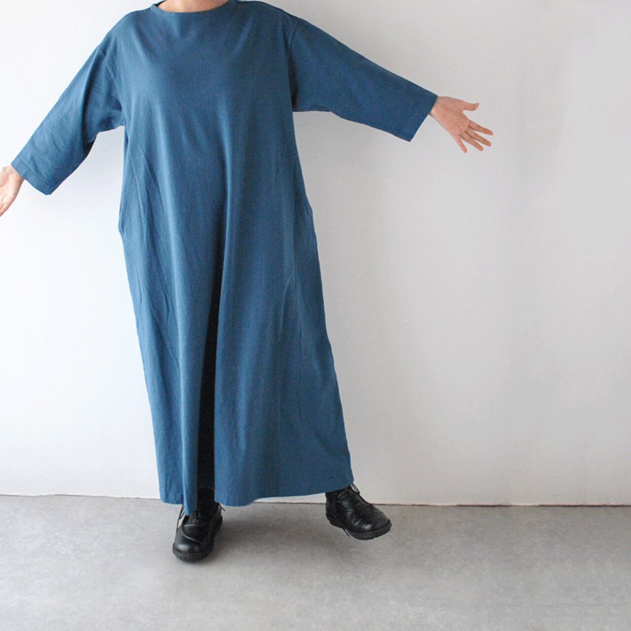 prit 空紡天竺 7分袖ボートネックマキシワンピース (ブルーグレー) P91555