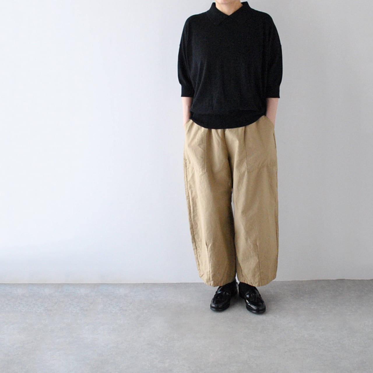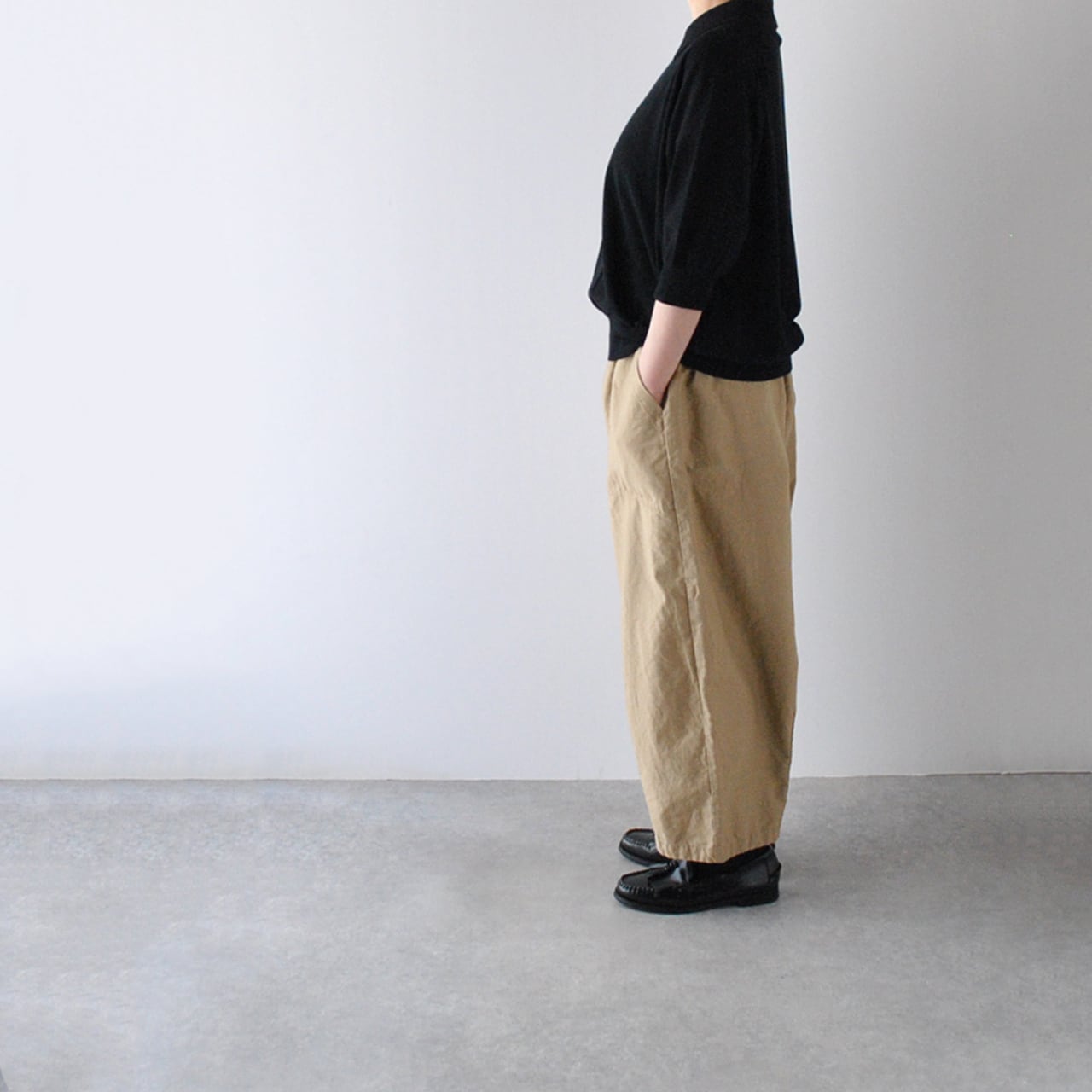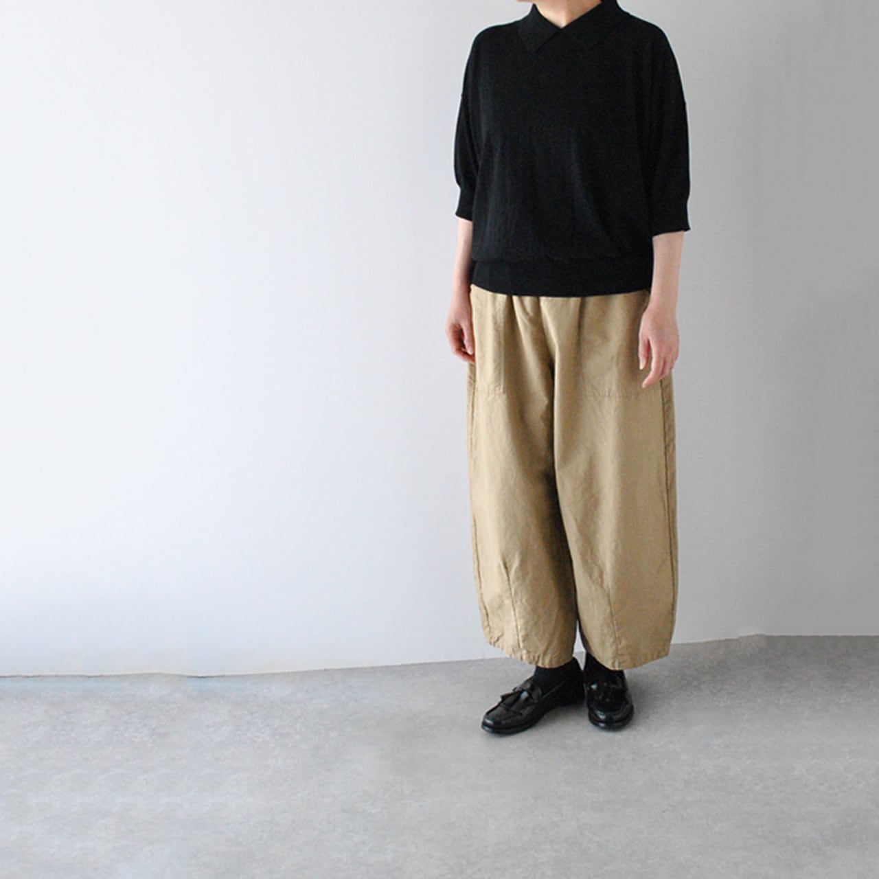 pritからサラリとした肌触りの綿麻素材が心地よいベイカーパンツが入荷しました。着こなしがシンプルになるこれからの季節は、パンツのシルエットが重要になってきますよね。こちらはぽってりとした丸みを帯びたシルエットとアンクル丈のバランスが絶妙で、様々なトップスに本当に可愛く合わせて頂ける頼もしい一枚です。股上も深く、ゆったりとした腰周りで、包み込まれるような安心感のある軽い履き心地も◎。春から夏にかけて様々なコーディネートにお使い頂ける本当にオススメの一枚です。