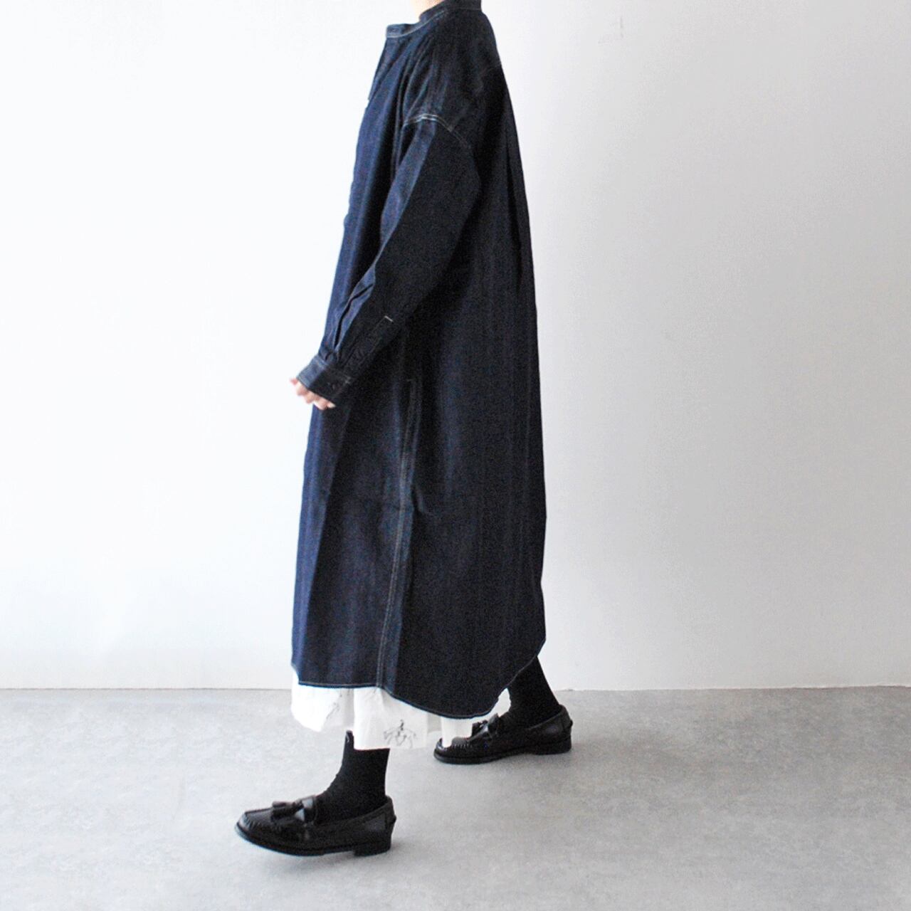 prit 6ozデニム スタンドカラーワイドシャツワンピース (ネイビー) P81533